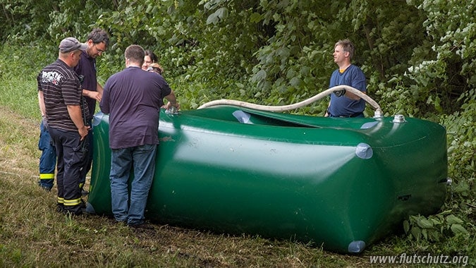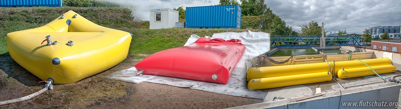 Als Notfallsystem wird der FLUTSCHUTZ - Doppelkammerschlauch gemäß einer Empfehlung des Fachverbands BWK für den notfallmäßigen Einsatz von Schutzsystemen für eine maximale Stauhöhe von 0,60 m ausgelegt, wobei konstruktiv bei einer Aufbauhöhe von 1,00 m eine Sicherheitsreserve von 0,30 m vorgesehen ist.